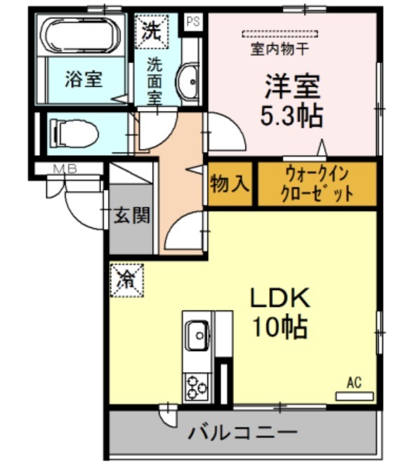 | 間取り詳細 | LDK 10畳 、 洋室 5.3畳 |
