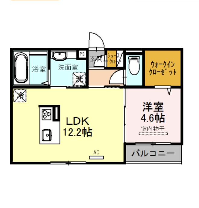 | 間取り詳細 | LDK 12.2畳 、 洋室 4.6畳 |
