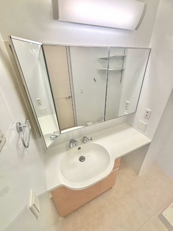 | 設備 | ガス(都市ガス)、インターホン(TVモニター付き)、防犯カメラ、オートロック、宅配ボックス、専用ゴミ置き場(24Hゴミ出し可)、駐輪場、日当り良好、角部屋、通風良好、フローリング、全居室フローリング、クッションフロア、ベランダ・バルコニー、2面バルコニー、ウォークインクローゼット、ウォークインクローゼット数(1)、下駄箱、バス・トイレ別(別室)、シャワー、浴室乾燥機、脱衣所、給湯、ウォシュレット、洗面台、洗面所独立、シャンプードレッサー、洗濯機置き場(室内)、コンロ設置済、コンロ口数(3)、コンロ種類(都市ガス)、グリル、システムキッチン、カウンターキッチン、エアコン、エアコン台数(1)、24H換気システム、CATV、インターネット使用料無料 | ||