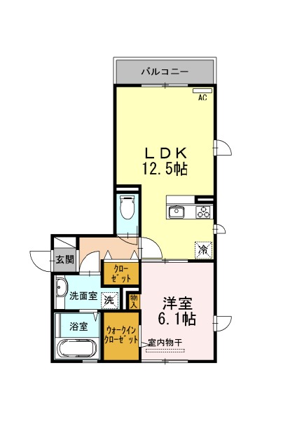 | 間取り詳細 | LDK 12.5畳 、 洋室 6.1畳 |