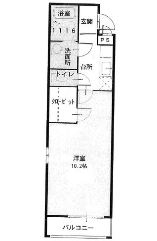 | 間取り詳細 | K 2.5畳 、 洋室 10.2畳 |