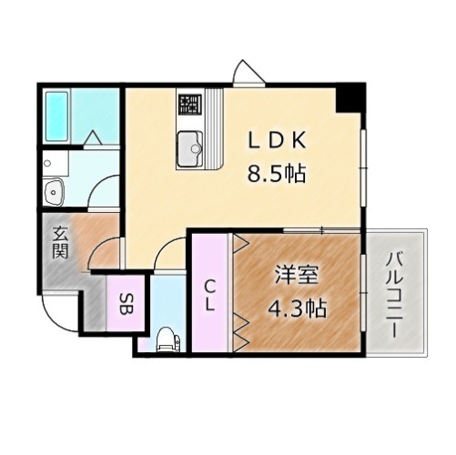 | 間取り詳細 | LDK 8.5畳 、 洋室 4.3畳 |