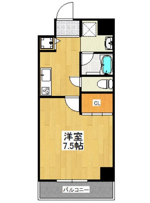 | 間取り詳細 | K 2.5畳 、 洋室 7.5畳 |