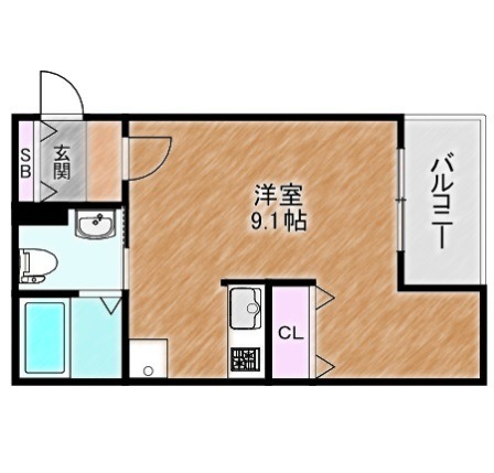| ワンルーム | 洋室 9.1畳 | 22.43㎡ |