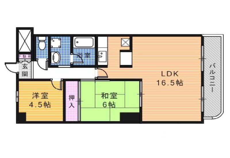 | 間取り詳細 | LDK 16.5畳 、 和室 6畳 、 洋室 4.5畳 |