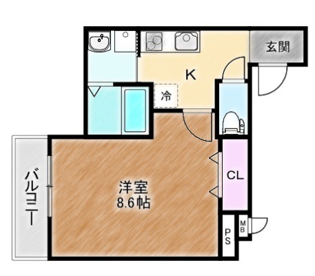 | 間取り詳細 | K 2.5畳 、 洋室 8.6畳 |