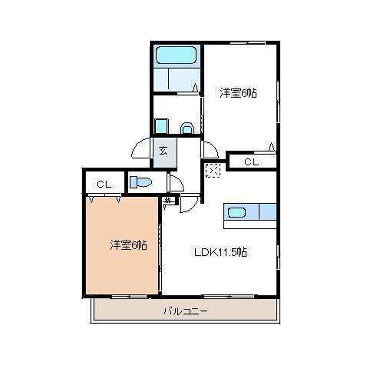 | 間取り詳細 | LDK 11.5畳 、 洋室 6畳 、 洋室 6畳 |