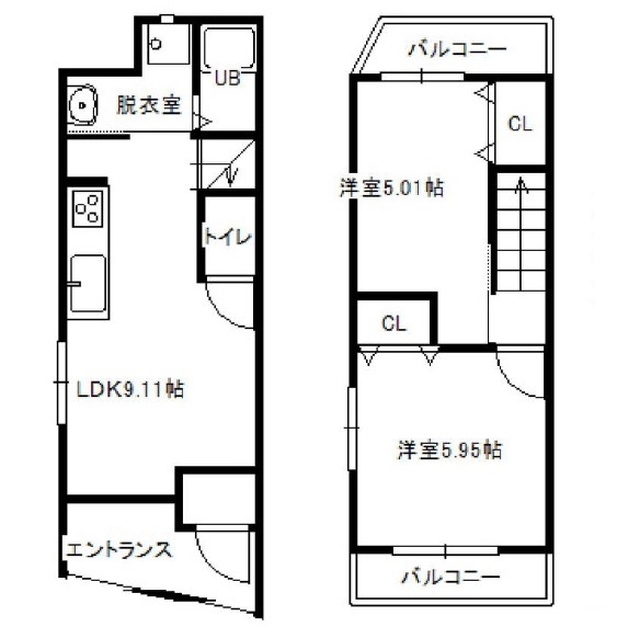 洋室 5.95畳 洋室 5.01畳 |