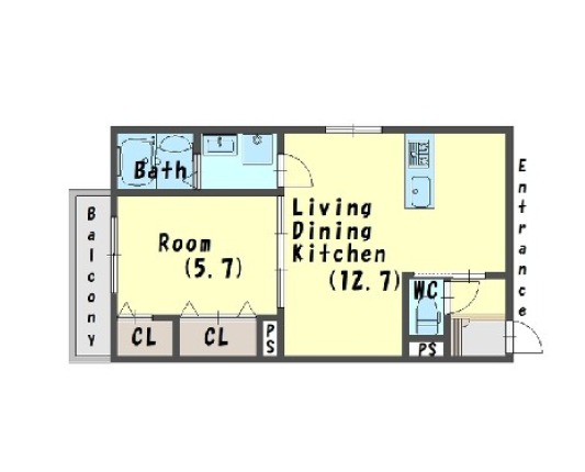 | 間取り詳細 | LDK 12.7畳 、 洋室 5.7畳 |