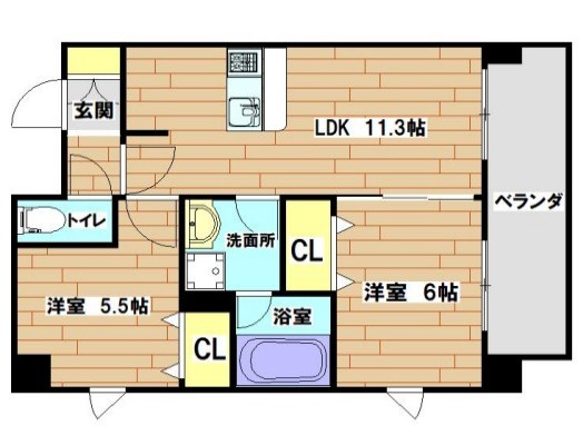 | 間取り詳細 | LDK 11.3畳 、 洋室 6畳 、 洋室 5.5畳 |