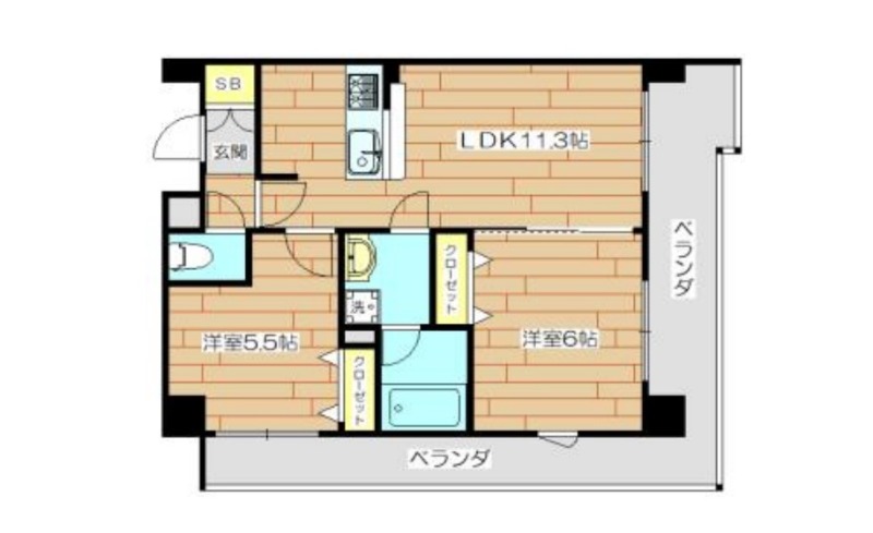 | 間取り詳細 | LDK 11.3畳 、 洋室 6畳 、 洋室 5.5畳 |