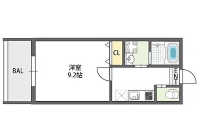 | 間取り詳細 | K 2.5畳 、 洋室 9.2畳 |