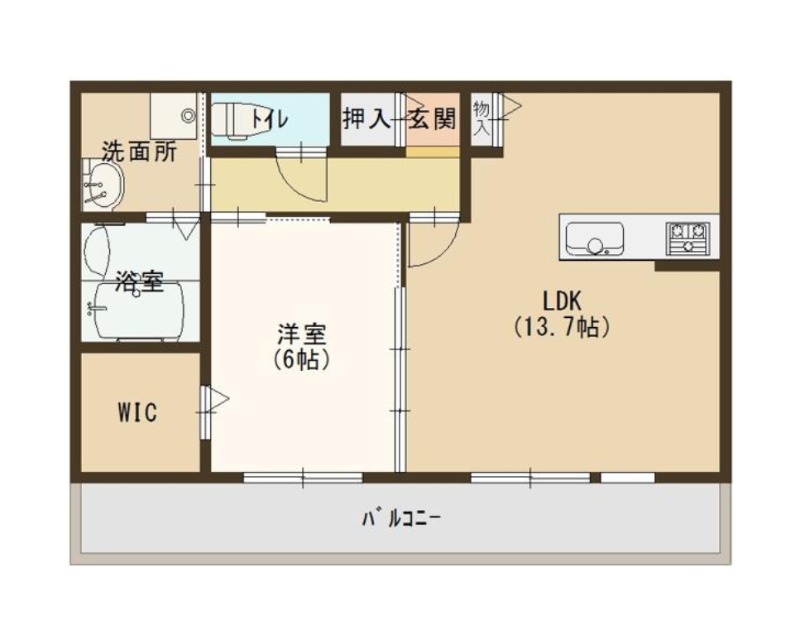 | 間取り詳細 | LDK 13.7畳 、 洋室 6畳 |