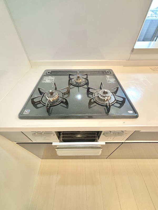 | 設備 | ガス(都市ガス)、インターホン(TVモニター付き)、防犯カメラ、オートロック、専用ゴミ置き場(24Hゴミ出し可)、駐輪場、日当り良好、通風良好、フローリング、全居室フローリング、クッションフロア、ベランダ・バルコニー、ウォークインクローゼット、ウォークインクローゼット数(1)、下駄箱、バス・トイレ別(別室)、シャワー、追い焚き、脱衣所、給湯、3点給湯、ウォシュレット、ウォームレット、洗面台、洗面所独立、シャンプードレッサー、洗濯機置き場(室内)、コンロ設置済、コンロ口数(3)、コンロ種類(都市ガス)、グリル、システムキッチン、カウンターキッチン、CATV、インターネット使用料無料 | ||