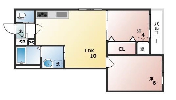 | 間取り詳細 | LDK 10畳 、 洋室 6畳 、 洋室 4畳 |