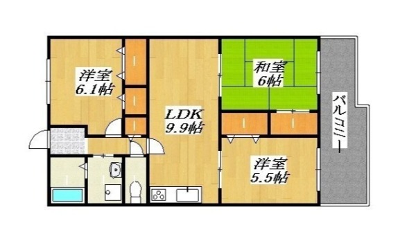 | 間取り詳細 | 洋室 9.9畳 、 洋室 6.1畳 、 洋室 5.5畳 、 和室 6畳 |