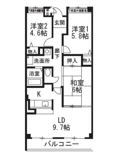 | 間取り詳細 | LDK 畳 、 洋室 5.8畳 、 洋室 4.6畳 、 和室 6畳 |