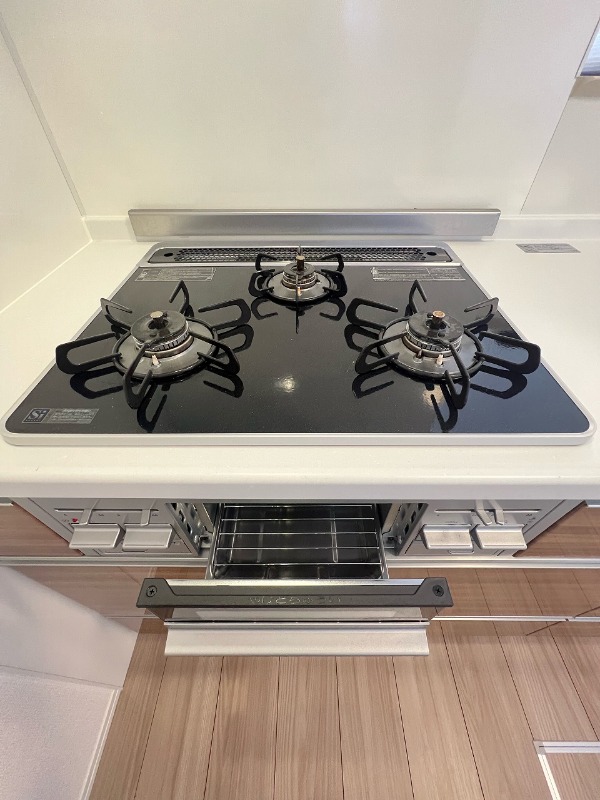 グリル付きの3口コンロで段取り良くお料理が出来ます♪