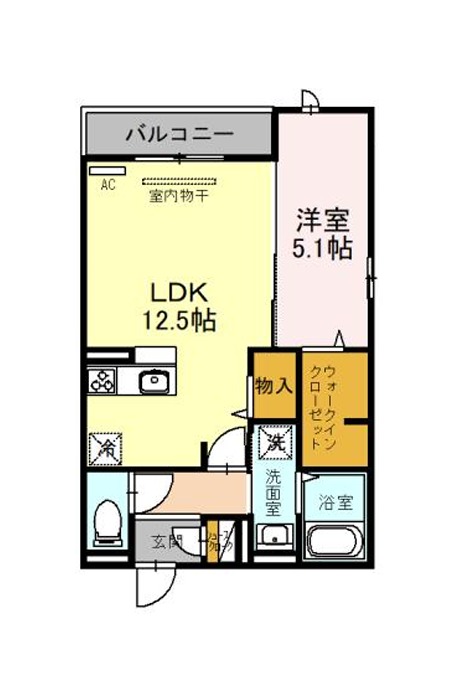 | 間取り詳細 | LDK 12.5畳 、 洋室 5.1畳 |