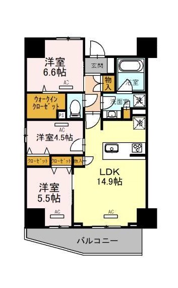 | 間取り詳細 | LDK 14.9畳 、 洋室 6.6畳 、 洋室 5.5畳 、 洋室 4.5畳 |