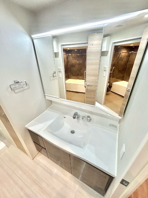 | 設備 | ガス(都市ガス)、インターホン(TVモニター付き)、オートロック、宅配ボックス、専用ゴミ置き場(24Hゴミ出し可)、駐輪場、日当り良好、通風良好、フローリング、全居室フローリング、クッションフロア、照明器具、ベランダ・バルコニー、クローゼット、クローゼット数(3)、ウォークインクローゼット、ウォークインクローゼット数(1)、下駄箱、バス・トイレ別(別室)、シャワー、追い焚き、浴室乾燥機、脱衣所、給湯、ウォシュレット、洗面台、洗面所独立、シャンプードレッサー、洗濯機置き場(室内)、コンロ設置済、コンロ口数(3)、コンロ種類(都市ガス)、システムキッチン、カウンターキッチン、エアコン、エアコン台数(4)、24H換気システム、インターネット使用料無料 | ||