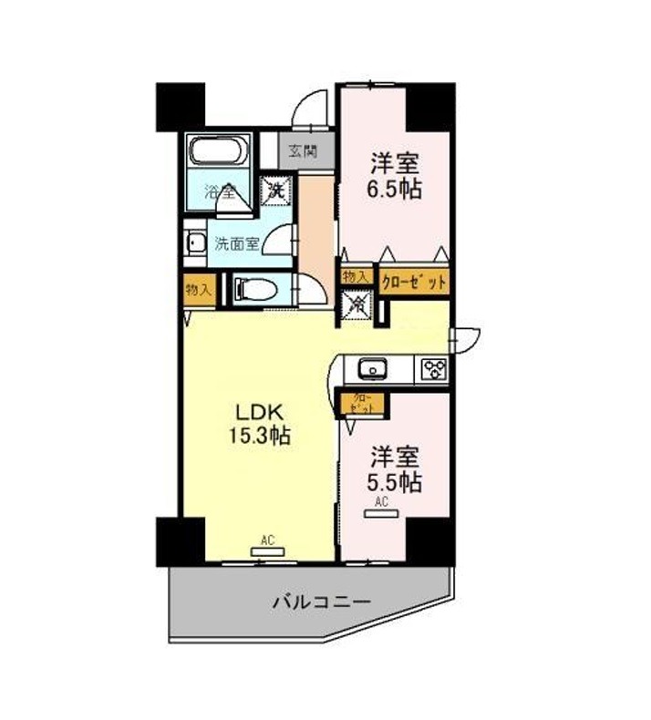 | 間取り詳細 | LDK 15.3畳 、 洋室 6.5畳 、 洋室 5.5畳 |