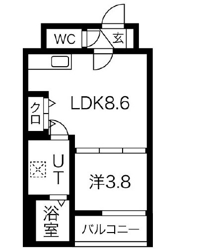 | 間取り詳細 | LDK 8畳 、 洋室 3.8畳 |