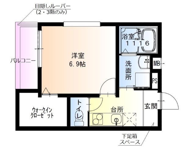 | 間取り詳細 | 洋室 6.9畳 、 K 2.5畳 |