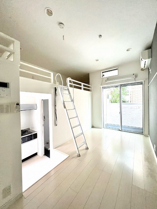 | 設備 | ガス(プロパン)、インターホン(TVモニター付き)、専用ゴミ置き場(24Hゴミ出し可)、駐輪場、日当り良好、角部屋、デザイナーズ、通風良好、フローリング、全居室フローリング、ロフト、クッションフロア、ベランダ・バルコニー、クローゼット、クローゼット数(1)、下駄箱、バス・トイレ別(別室)、シャワー、追い焚き、脱衣所、給湯、ウォシュレット、洗面台、洗面所独立、シャンプードレッサー、洗濯機置き場(室内)、コンロ設置済、コンロ口数(2)、コンロ種類(プロパン)、システムキッチン、エアコン、エアコン台数(1)、インターネット使用料無料 | ||