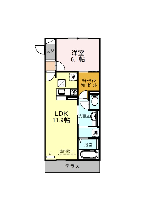 | 間取り詳細 | LDK 11.9畳 、 洋室 6.1畳 |