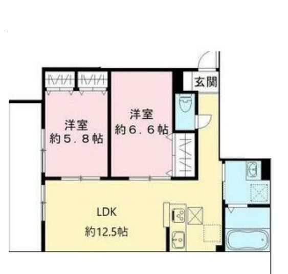 | 間取り詳細 | LDK 12.5畳 、 洋室 6.6畳 、 洋室 5.8畳 |