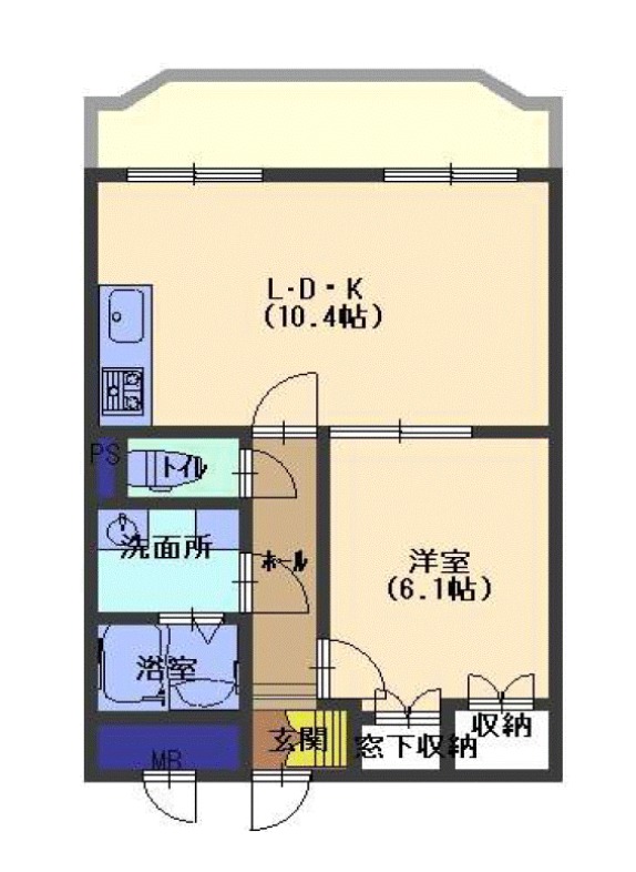 | 間取り詳細 | LDK 10.4畳 、 洋室 6.1畳 |