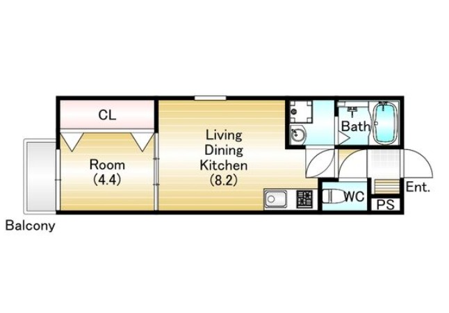 | 間取り詳細 | LDK 8.2畳 、 洋室 4.4畳 |