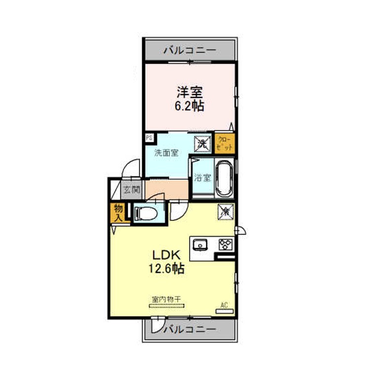 | 間取り詳細 | LDK 12.5畳 、 洋室 6.2畳 |