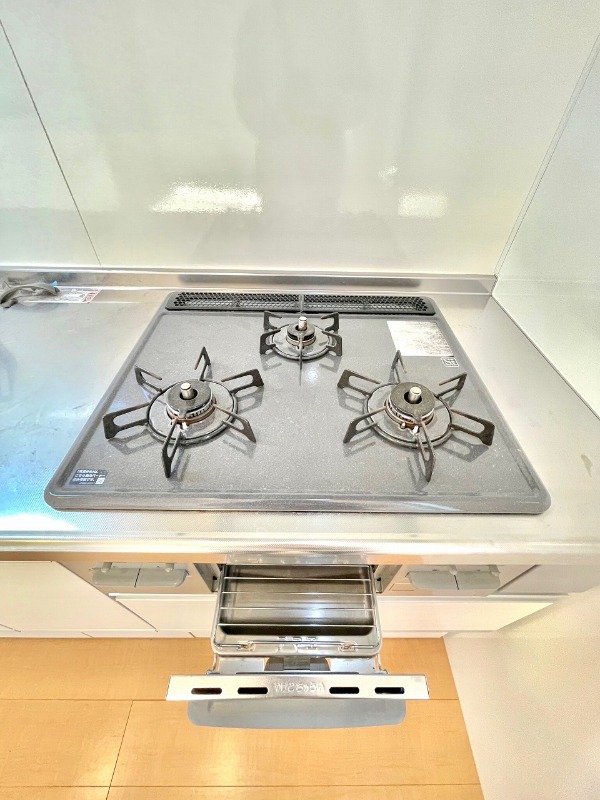 グリル付きの3口コンロで段取り良く料理が出来ます♪