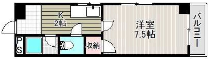 | 間取り詳細 | 洋室 7.5畳 、 K 2畳 |