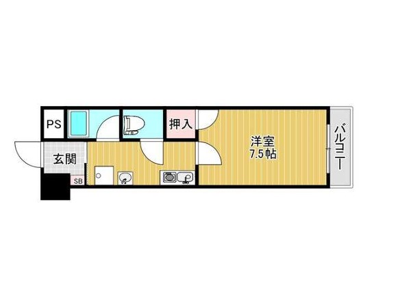 | 間取り詳細 | 洋室 7.5畳 、 K 2畳 |