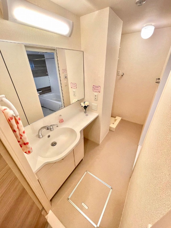 | 設備 | ガス(都市ガス)、インターホン(TVモニター付き)、防犯カメラ、カードキー、オートロック、専用ゴミ置き場(24Hゴミ出し可)、駐輪場、日当り良好、通風良好、フローリング、全居室フローリング、クッションフロア、ベランダ・バルコニー、クローゼット、クローゼット数(2)、下駄箱、バス・トイレ別(別室)、シャワー、追い焚き、浴室乾燥機、脱衣所、給湯、浴室1坪以上、ウォシュレット、洗面台、洗面所独立、シャンプードレッサー、洗濯機置き場(室内)、コンロ設置済、コンロ口数(3)、コンロ種類(都市ガス)、グリル、システムキッチン、カウンターキッチン、エアコン、エアコン台数(1)、24H換気システム、インターネット使用料無料 | ||