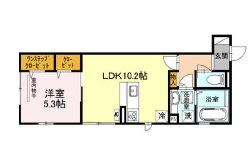 | 間取り詳細 | LDK 10.2畳 、 洋室 5.3畳 |