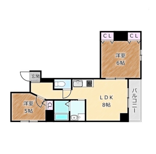 | 間取り詳細 | LDK 8畳 、 洋室 6畳 、 洋室 5畳 |