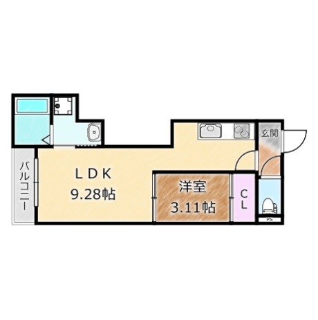 | 間取り詳細 | LDK 9.28畳 、 洋室 3.11畳 |