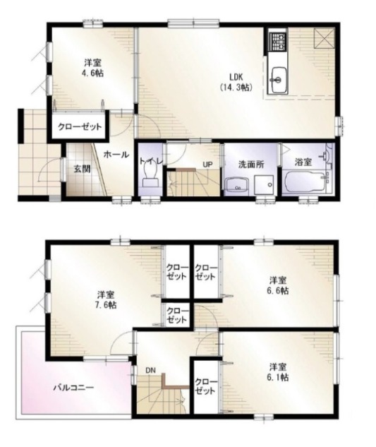 | 間取り詳細 | LDK 14.3畳 、 洋室 4.6畳 、 洋室 6.6畳 、 洋室 6.1畳 、 洋室 7.6畳 |