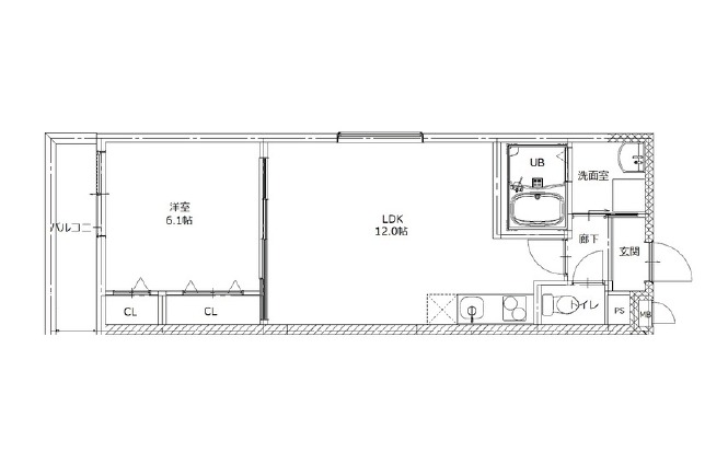| 間取り詳細 | LDK 12畳 、 洋室 6.1畳 |