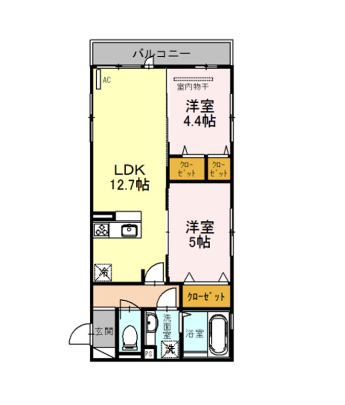 | 間取り詳細 | LDK 12.7畳 、 洋室 5畳 、 洋室 4.4畳 |