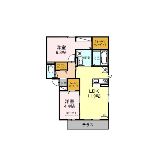 | 間取り詳細 | LDK 11.9畳 、 洋室 6.8畳 、 洋室 4.4畳 |