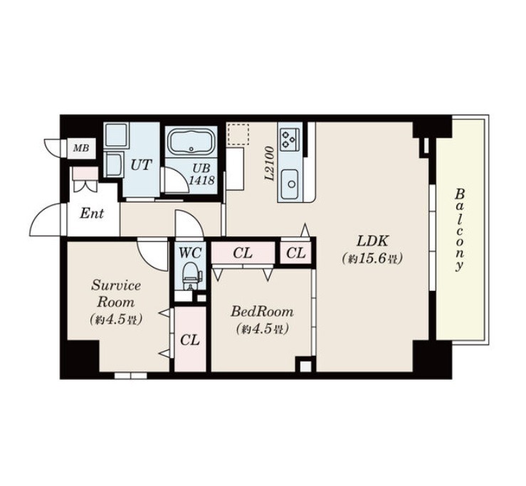 | 間取り詳細 | LDK 15.6畳 、 洋室 4.5畳 、 洋室 4.5畳 |