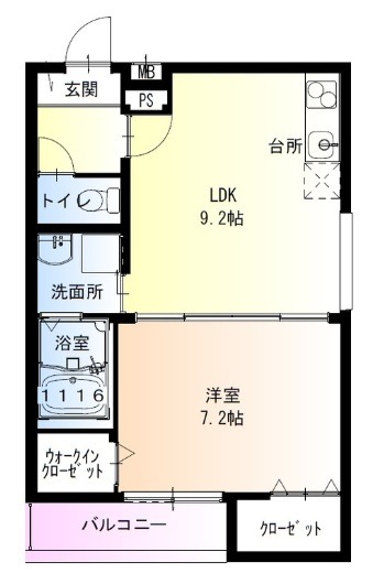| 間取り詳細 | LDK 9.2畳 、 洋室 7.2畳 |