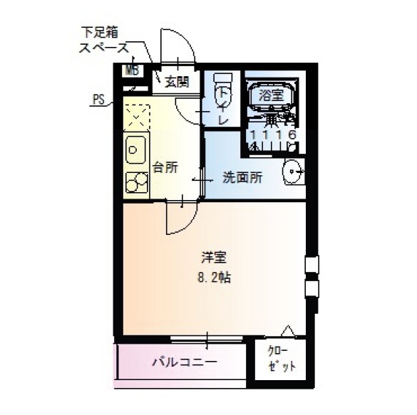 | 間取り詳細 | 洋室 8.2畳 、 K 2.5畳 |