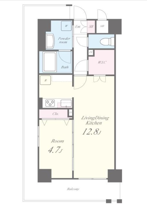 | 間取り詳細 | LDK 12.8畳 、 洋室 4.7畳 |