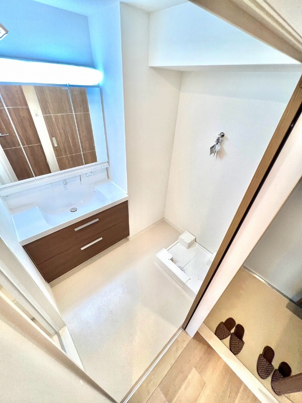 | 設備 | ガス(都市ガス)、インターホン(TVモニター付き)、防犯カメラ、オートロック、宅配ボックス、専用ゴミ置き場(24Hゴミ出し可)、駐輪場、日当り良好、通風良好、フローリング、全居室フローリング、クッションフロア、ベランダ・バルコニー、L字型バルコニー、クローゼット、クローゼット数(1)、ウォークインクローゼット、ウォークインクローゼット数(1)、下駄箱、バス・トイレ別(別室)、シャワー、追い焚き、浴室乾燥機、脱衣所、給湯、3点給湯、ウォシュレット、洗面台、洗面所独立、シャンプードレッサー、洗濯機置き場(室内)、コンロ設置済、コンロ口数(3)、コンロ種類(都市ガス)、グリル、システムキッチン、エアコン、エアコン台数(1)、24H換気システム、インターネット使用料無料 | ||